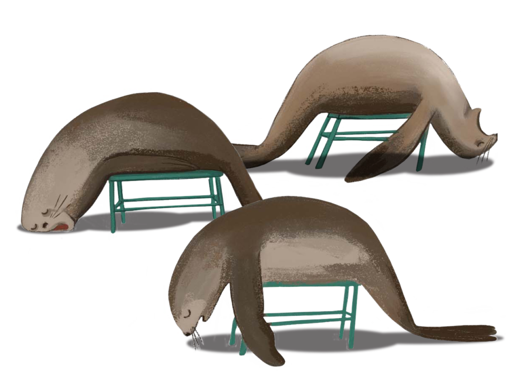 Go on a seek-and-find adventure to search high and low for little hints and clues to discover what is being left behind in the taxi! Would you like a little tip? (Look closely inside Mr. Taxi’s taxi on the pages where the animals jump into the sea!)