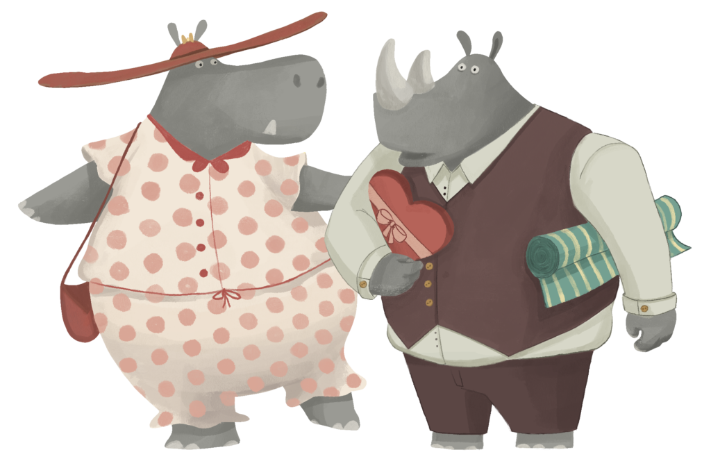 How dapper Rhino is in his sharp looking vest! Is that a box of valentine chocolates he is carrying? (pssst … Do you think he is going to give them to Missy Prissy?) How many chocolates do you think are in the box? Can you count them? Yum!