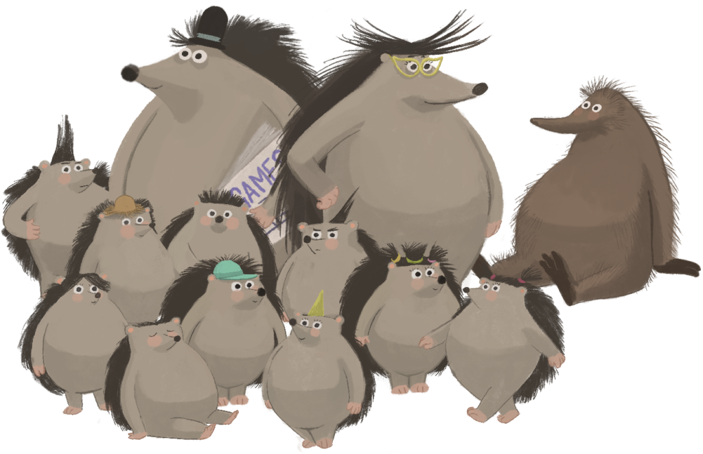 And who is that with them? That is their sweet and adorable adopted sister! She is an echidna … and she really, really, really wishes she had a HAT!