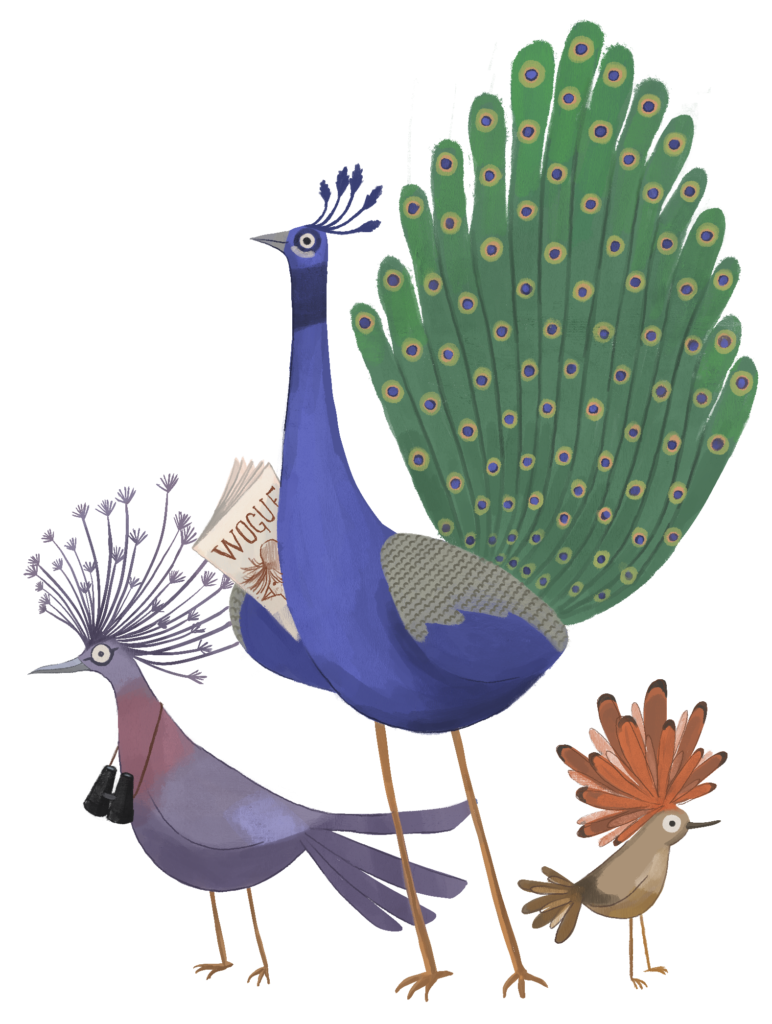 He loves to look through magazines to discover new ways to style them. Isn’t it fun to style your own feathers (that’s hair for humans) in playful ways?